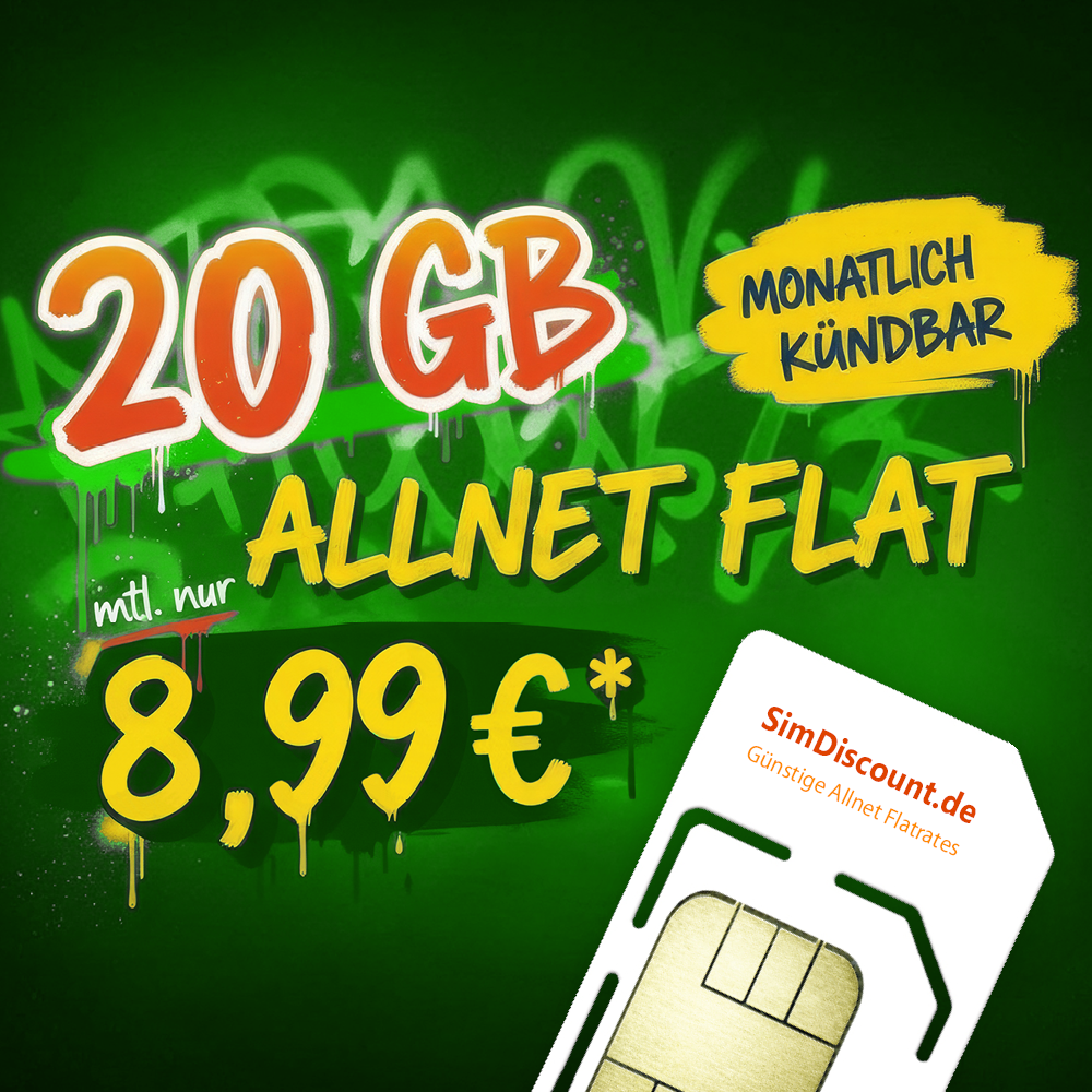 20 GB Allnet Flat (5G) für nur 8,99 €/Monat